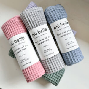 Wykonany z bawełny wafelkowej z certyfikatem OEKO-TEX Standard 100. Mięciutki i bardzo dobrze chłonący wodę już po pierwszym praniu. Wafelek to materiał dwustronny o bardzo wyraźnej, stabilnej, przestrzennej strukturze. Jest gładki i przyjemnie miękki. To bardzo chłonna tkanina, oddychająca, szybko schnąca. Nasz ręczniczek będzie wspaniałym uzupełnienim pozostałych naszych wafelkowych produktów jak ręcznik dla dorosłych, ręcznik dla dzieci, turban do suszenia włosów, opaska czy myjka
